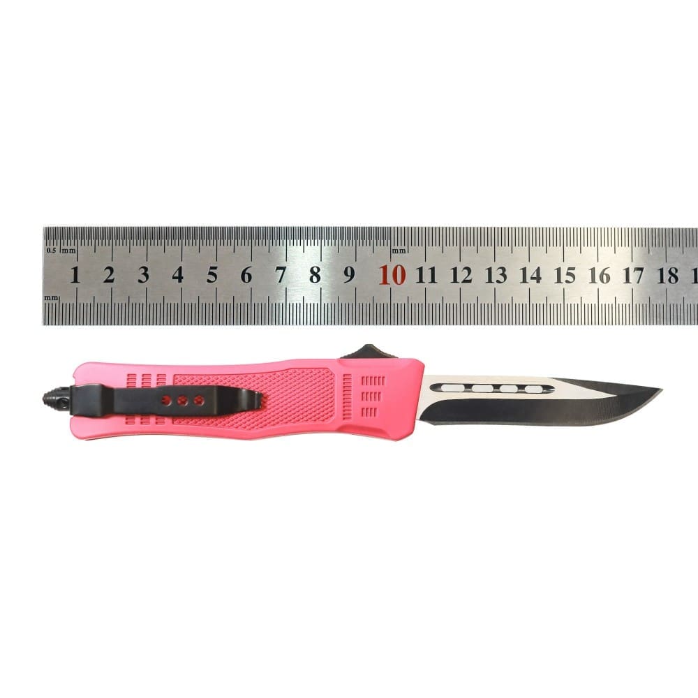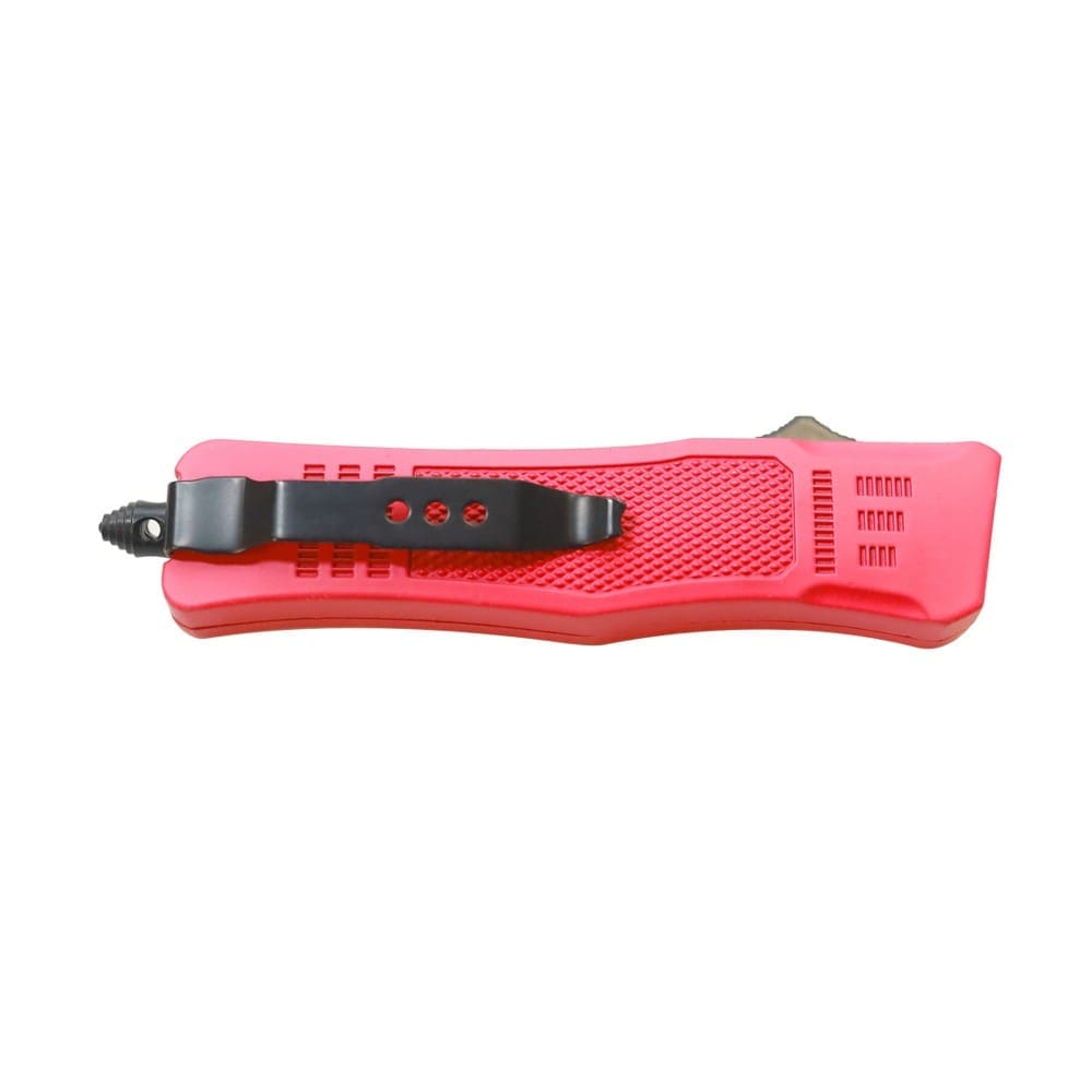 The OTF knife’s blade slides out smoothly with just a push of a button, offering lightning-fast access when you need it most.