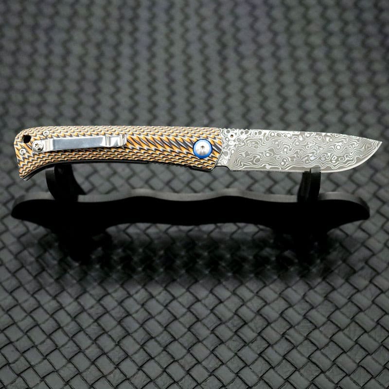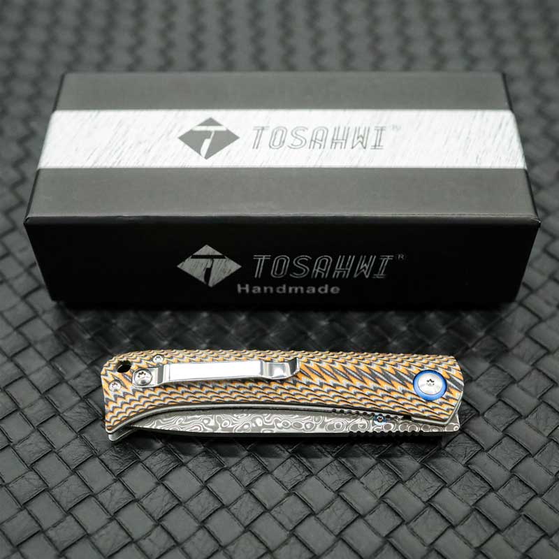 Tosahwi Contrasting Colors G10 Handle Damascus Steel Pocket Knife