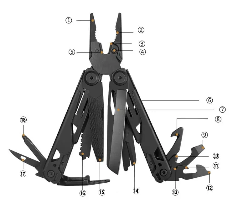 Tosahwi 18-in-1 EDC Multi Tool Pliers EDC Tool With Pocket Nylon Sheath
