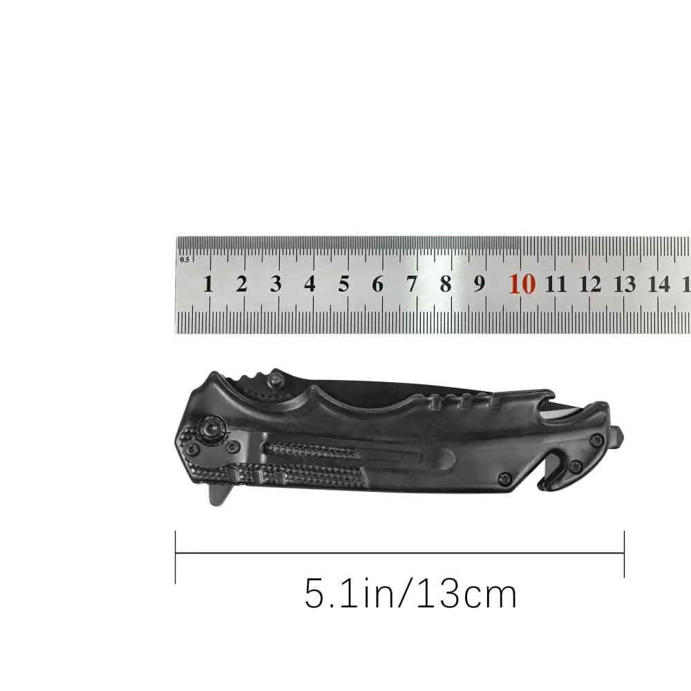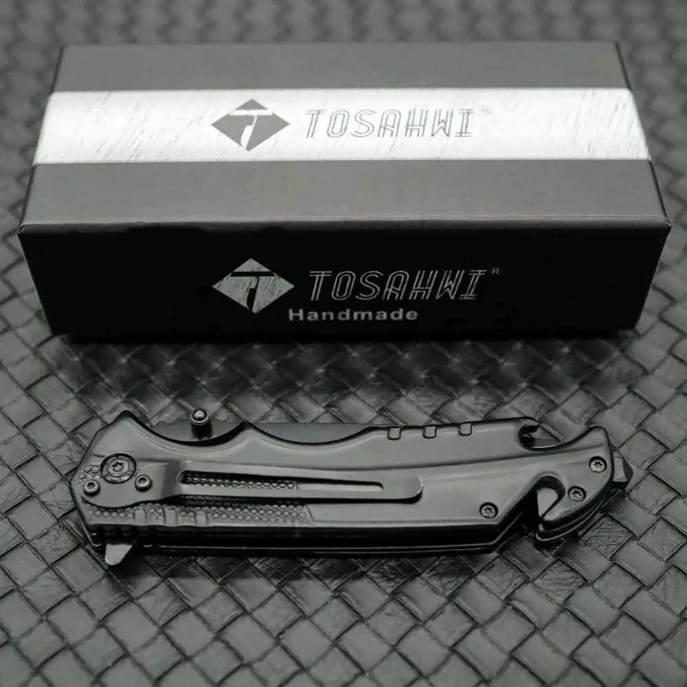 Tosahwi All Black Folding EDC 5 in 1 Pocket Knife