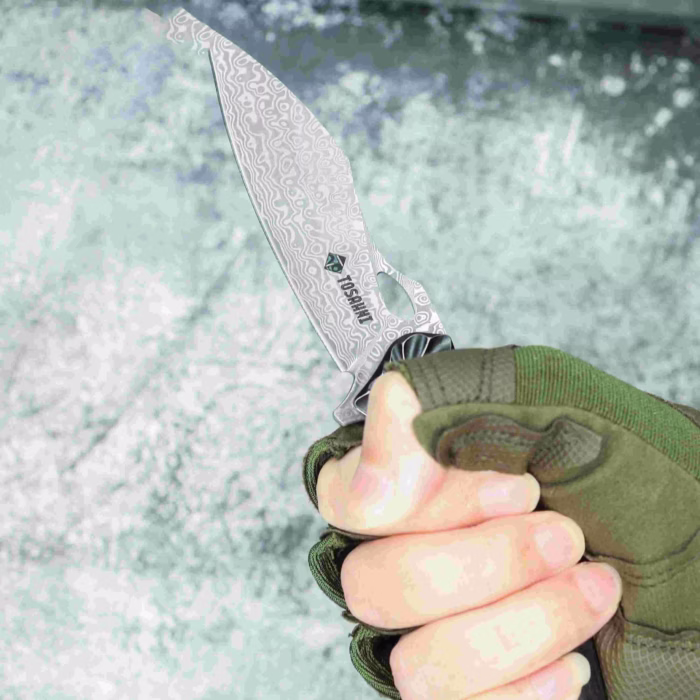 The 3.54-inch blade is crafted from high-quality forged steel, delivering exceptional sharpness, edge retention, and corrosion resistance. The intricate Damascus-style patterns on the blade enhance its visual appeal while maintaining robust functionality for daily use and outdoor tasks. - Folding Blade Design: